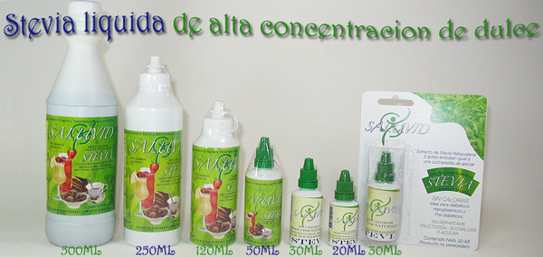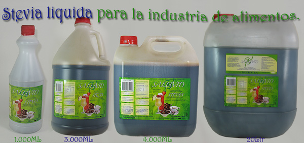2.- Stevia liqueida en envases industriales 3.- Stevia en